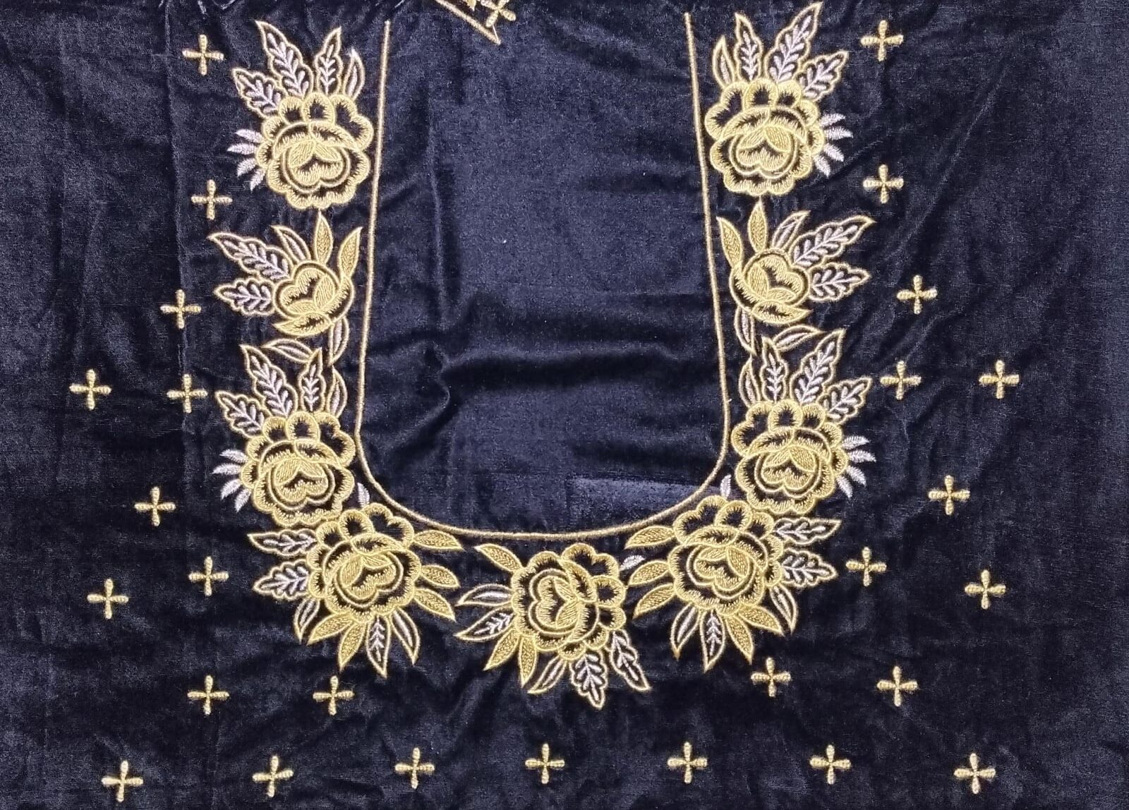 Gorgeous golden floral neckline for a rich traditional look
